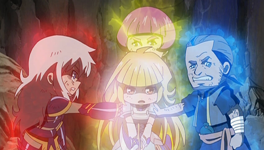 魔王ビザンテは、ビザンテオンを跡形も無く吹き飛ばし、3つの秘石を闇に染めて砕いた。己の野望を阻むものは何も無いと笑うビザンテ。絶望に言葉も出ないミコト姫一同。だが、イソウェルの故事に習い、3つの力をミコトに注ぎ込んで闇の扉を封じる作戦に最後の望みを託す。ブリリアントがジンが、そしてディアガーがミコトに力を注ぎ込む間、時間を稼ぎを強要される一同。だが、闇そのものとなった魔王ビザンテ相手にはいかなる攻撃も通用しなかった。その時、ペフーの体に異変が起きた!