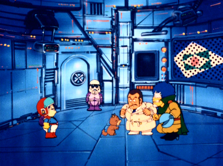 デンチを奪い、救援の飛行機に乗り込んで逃走するマシリト&びびるマン。アラレも子犬を追いかけて船内に侵入する。子犬を蹴飛ばした、びびるマンをぶっ飛ばしたアラレだったが、エネルギーが切れてしまい…。