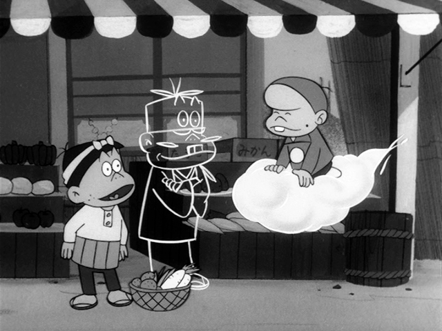 ×五郎が天国土産に、人を乗せて飛ぶ雲・天国カーを持ち帰った。仕事に活用するデコッ八だが、雲の一部がケムンパスに渡り、さらにニャロメが横取りしてしまう。実はこの天国カー、勝手に持ち出されたもので…。後半は町に奇病が発生するお話。福笑い病院の院長は“スモウ病”と命名し、不治の難病だと断言する。
