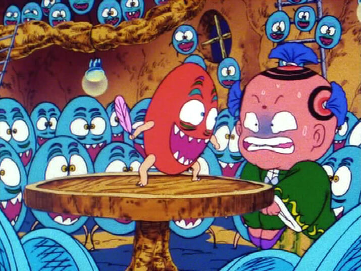 飛び岩に乗っていれば無縁ゾーンから脱出できると、シャーマンカーンが突き止めた。喜ぶ神帝たち。しかし脱出の際に出る高熱を防ぐには、お守りの七助たちが持つ幸七フェザーが必要だ。そこで神帝一同は、七助たちを訪ねて幸七フェザーを集めることにした。しかし生き延びていた怪鬼党賊の手下たちによって、的助の持つ一枚が奪われてしまう。ヘッドロココの優しい言葉に励まされ、手下の隠れ家を見つけた的助は…。