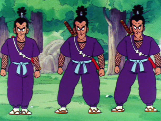 ブーメラン手裏剣での卑劣な攻撃も、悟空を倒すことはできなかった。ムラサキはついに奥の手の分身の術を繰り出し、5人に増える。リアルな存在感、5つの武器を持った容赦ない攻撃…。それもそのはず、分身たちはムラサキの5つ子の兄弟たちだったのだ。全員本物と知って迷いの消えた悟空は、残像拳で反撃に出る!