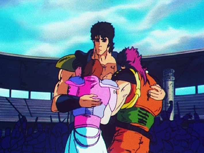 隠密行動をとっていたリンとバット。だが、エリア司令官バスクの手下によって、何の関係もないただの若い男女がリンとバットとして捕らえられてしまう。しかも非情なバスクは、その女を見せしめに処刑しようとする。死を覚悟して名乗りをあげようとするリンとバット。そこに、突然現れた『男』…それは、ラオウの愛馬「黒王号」を従えたケンシロウだった!