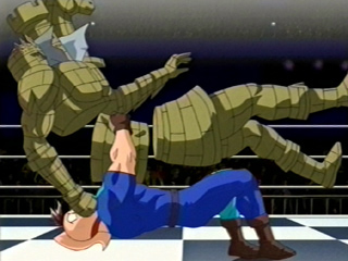 ところが、万太郎の奪い取ったチェス・ピースは「ポーン」といって将棋の歩に当たるものだったので、リング上のチェス盤を一歩ずつしか進めなくて自由な攻撃が出来なかった。そこであっけなくあきらめた万太郎は元の姿に戻る。