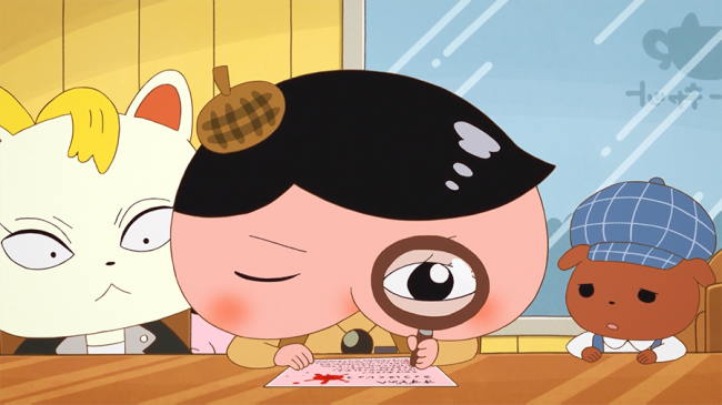 ラッキーキャットで、すずにあてた「ももいろのきょうはくじょう」が見つかった。 マスターの いらいをうけて、おしりたんていたちは、すずに きょうはくじょうを だした じんぶつを さがすことに。 きょうはくじょうに のこされていた てがかりを もとに そうさをすすめると、どうやらカフェにきていた きゃくの なかに あやしいじんぶつが いるらしい。 すずに きょうはくじょうを だしたのは、いったいだれなのか?