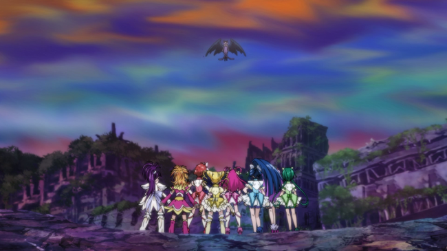 時計塔の鐘が鳴り響く中、8人のプリキュアは最後の決戦に挑む!