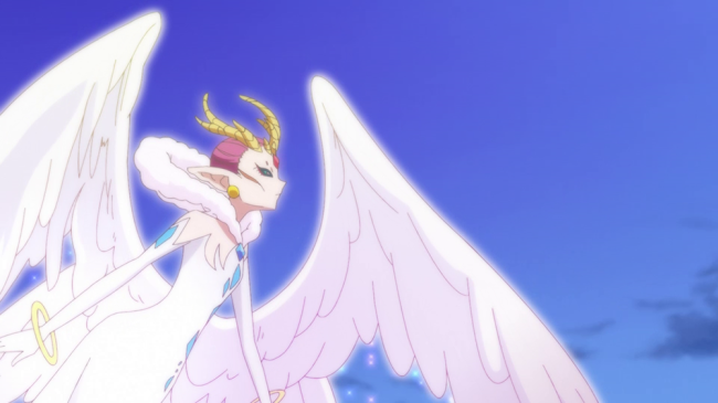 プリキュアや人々の様子に心動かされたベルは白い天使の姿に戻り、プリキュアと未来を約束して消えていく――。