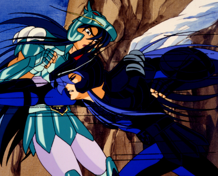 ようやく戻ってきた紫龍だったが、聖衣の修復に己の血を大量に流していたため、かすり傷からの出血でも死に至るほど弱っていた。相対する暗黒ドラゴンは、指先一つで紫龍を吹っ飛ばすほどの強者。紫龍はこの強敵を倒すため、弱っている時に使えば全身から血が噴き出すことを承知で、廬山昇龍覇を放った!