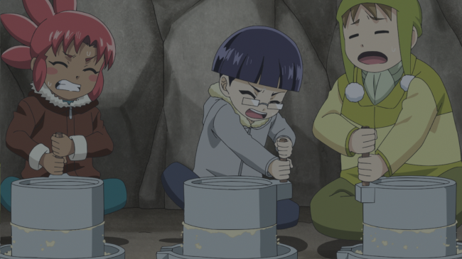 大停電は続く。電気で動くあらゆるものが使えない。スマホも通じなくなってしまった。原油不足も重なり物流もストップ。ストーブの灯油も車のガソリンも買えないし、食料はうばい合いだ。どうくつに入っていくシムを追うと、中はトウモロコシでいっぱいだった!ひとりじめかとせまるジオたちにシムは計画を明かす。風力発電所を動かし解決のきっかけを作る。そのためバイオ燃料を作って車を動かし、発電所にむかおうというのだ。