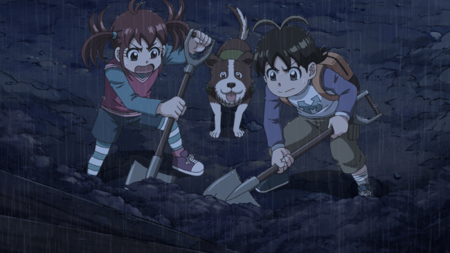 大きな地震(じしん)がおきた火伏島(ひぶせじま)で、ダイヤたちは子どもだけで孤立(こりつ)してしまう。3人で外に出たところで、はげしいゆれのために橋が落ちてしまったのだ。キュリは、防災パークのメインタワーは制震(せいしん)構造で建てられており、無事のはずだと考える。しかし、川をわたれずもどれない。その時! 海の水がどんどんひいているのを、マーレが発見する。津波(つなみ)が来る! 高い場所を目指せ!