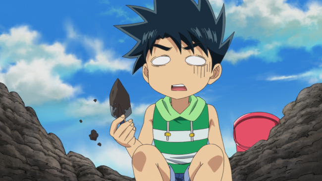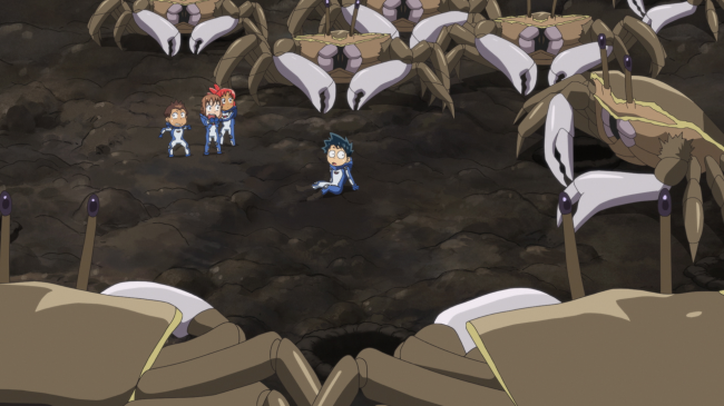 サバイバルの達人ジオと、ピピ、ケイ、ミキ、クムボは干潟(ひがた)にやってきた。干潟は、海辺で潮(しお)がひいたときにあらわれる、砂(すな)や泥(どろ)がたまった浜(はま)。生きものがたくさん生息している。ジオたちは、ボランティアガイドのサラ、ムツゴロウ漁師(りょうし)の海鮮(ウミキ)と、生きものを集める勝負をすることに。雨をよけるために、ノウ博士が発明したスーツを着ると、体が小さくなってしまった!