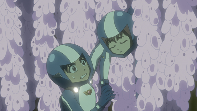 干潟(ひがた)からぬけだそうと陸地を目指すジオたち。あと少しでスーツの効果が切れて、元の大きさにもどれるはずだ。一方、後からやってきたケイは、ジオたちがスーツを着て干潟に行ったことを知り、探そうとしていた。ジオとピピはテナガダコと戦い、巣穴に落ちてしまったサラを救出!おこるムツゴロウに海鮮(ウミキ)がモリで立ち向かう!そこにせまる肉食の魚、トビハゼ!ぜったいにみんなで、サバイバルしてみせる!