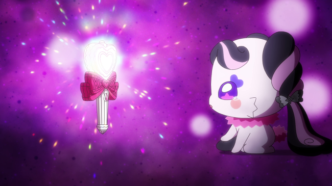 プリルンにカプセルを任せて、変身するうた、なな、こころ。一方、カプセルの中のメロロンの前にダークイーネが現れ、メロロンはもうひとりの自分・ダークメロロンと向き合います。「友達になりたい」と言い出せなかった自分と向き合い、本当の思いを伝えようとメロロンが決心すると、キラキライトから強い光が放たれ、ダークメロロンが消え去るとともに、カプセルから飛び出すメロロン。