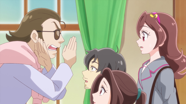 翌日、学校でみんなからも後押しされ、咲良うたとしてのアイドルデビューを決心するうた。家で社長の話を聞いていた両親もその希望を聞き入れてくれました。ところがうたが「よろしく」と歌いかけようとすると、社長は突然バツ印を作り、「プロになるのだから、普段は喉を休ませなければならない」と言いつのります。